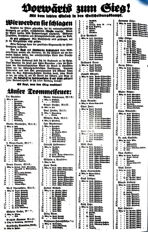 In Norddeutschland kam dazu noch die Radikalisierung vieler Bauern in der gewaltbereiten und antisemitisch ausgerichteten „Landvolkbewegung“, die als Reaktion auf die Agrarkrise der 1920er Jahre entstand und insbesondere an der Westküste aktiv war. Dass dann gerade der Landesteil Lübeck mit der Stadt Eutin zu einer frühen „Hochburg“ des Nationalsozialismus wurde, hängt aber wohl besonders damit zusammen, dass es in der Stadt so gut wie keine größeren Industriebetriebe gab und die Bevölkerung fast ausschließlich der evangelischen Kirche angehörte. Damit fehlten zwei der stärksten Gegenkräfte zur frühen Hitlerbewegung, der politische Katholizismus sowie eine gewerkschaftlich und parteipolitisch organisierte Industriearbeiterschaft. Dazu kam, dass die NSDAP in Eutin mit dem Rechtsanwalt und späteren Regierungspräsidenten Heinrich Böhmcker ab 1927 sowie dem Frauenarzt und Chirurgen Dr. Wolfgang Saalfeldt, der 1930 zum NSDAP-Ortsgruppenleiter „avancierte“, über zwei überaus fähige Agitatoren verfügte.